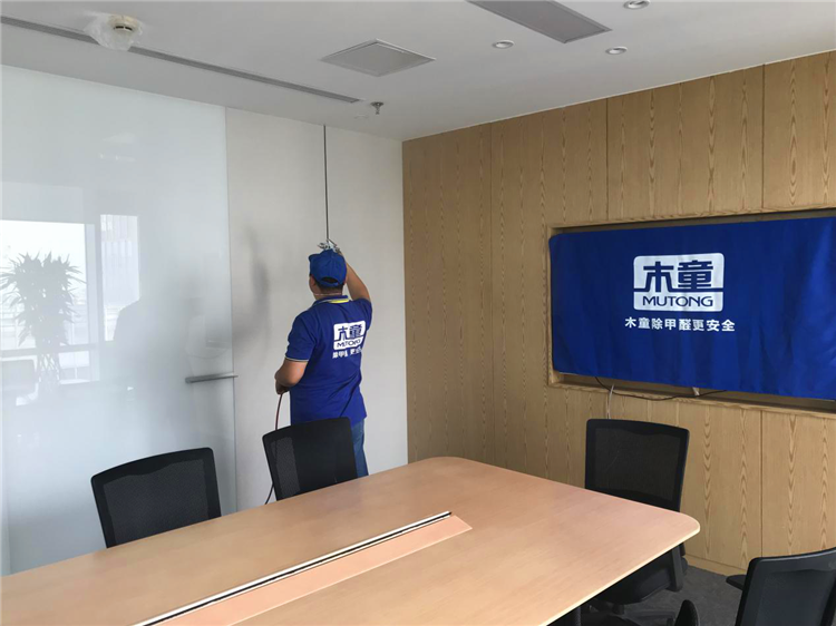 貴公司早在2015年與我司合作,對(duì)辦公室空氣污染進(jìn)行治理,今年公司擴(kuò)大規(guī)模,又新裝修一層辦公司,由于裝修比較高端,所用的板材數(shù)量較大,每間辦公室都是硬包式裝修,經(jīng)過CMA資質(zhì)公司檢測(cè)甲醛超標(biāo)嚴(yán)重,便再次請(qǐng)木童治理。