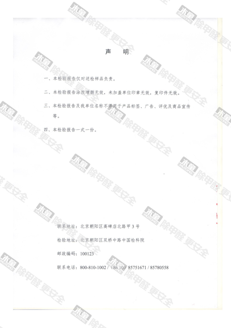 木童家具甲醛清除劑皮膚安全性檢測報告