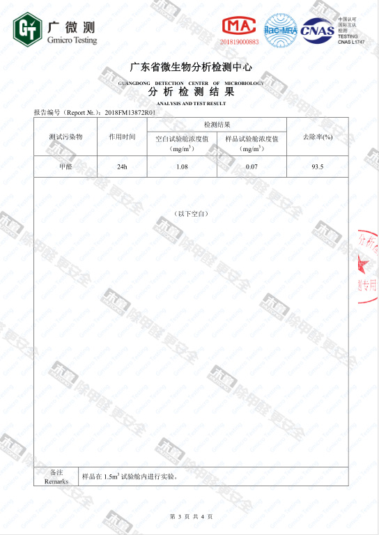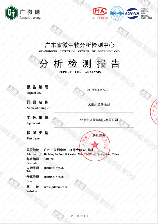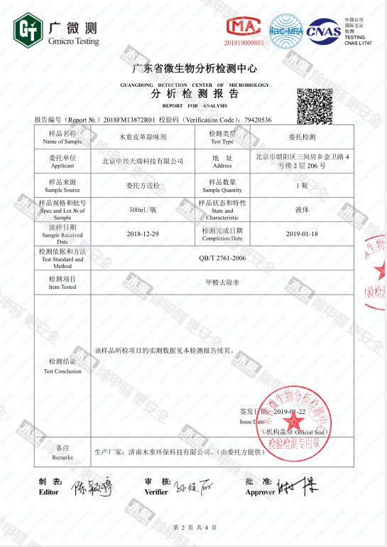 木童家具甲醛清除劑皮膚安全性檢測報告
