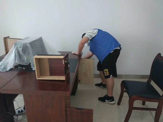 長海集團(tuán)辦公樓對(duì)墻面、木地板進(jìn)行了重新裝修,并購置了部分新的辦公家具,第一次甲醛檢測(cè),室內(nèi)空氣甲醛顯示超標(biāo),經(jīng)技術(shù)人員用甲醛自測(cè)盒對(duì)其辦公家具抽屜內(nèi)部進(jìn)行室內(nèi)污染源檢測(cè),判斷無論其新家具或是舊家具,因?yàn)榇蟛糠质敲芏劝遒N皮制作,甲醛釋放量大。