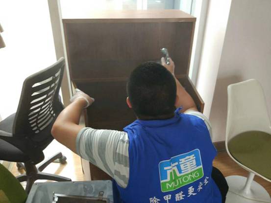 長沙木童服務(wù)商使用木童2號(hào)三代對(duì)其辦公家具內(nèi)進(jìn)行了重點(diǎn)除甲醛治理,并用木童家具甲醛清除劑對(duì)抽屜底部等密度板裸露部分進(jìn)行了涂刷。治理后,經(jīng)第三方CMA機(jī)構(gòu)復(fù)檢,甲醛、苯系物等指標(biāo)均合格。集團(tuán)相關(guān)負(fù)責(zé)的領(lǐng)導(dǎo)對(duì)治理效果非常滿意。