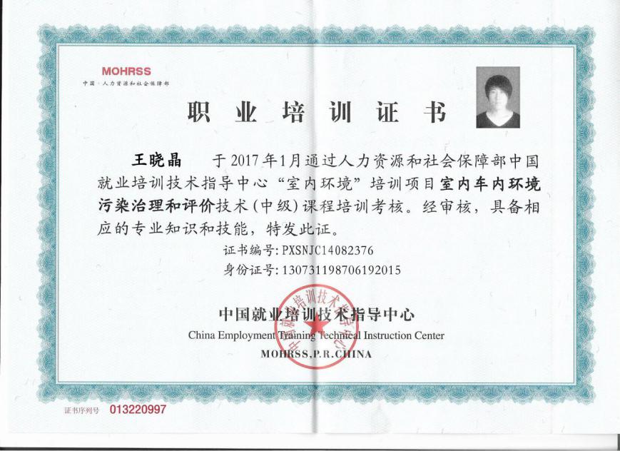 公司代理的木童除甲醛、除味產(chǎn)品質(zhì)量合格證書(shū)